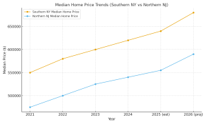 Verify my mortgage eligibility (Oct 3rd, 2025)Chart 2: Median home prices in Southern NY and Northern NJ have risen steadily, with accelerated growth projected into 2026.