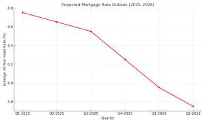Chart 3: Projected 30-year fixed mortgage rates show a steady decline beginning Q4 2025, fueling demand into 2026.